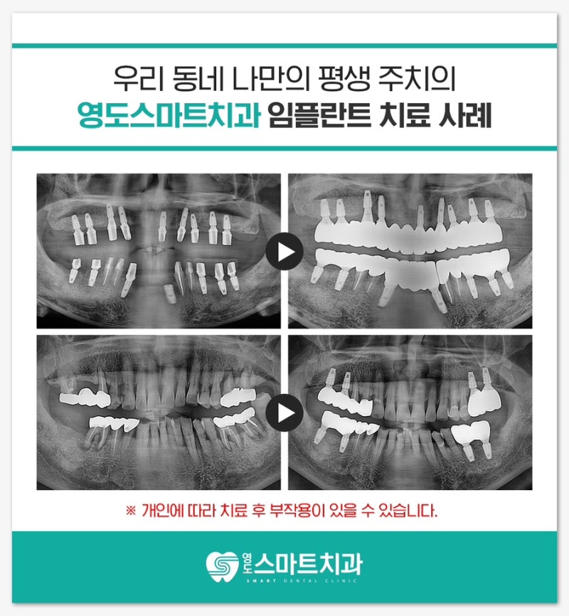 구강 상태에 따라 적절한 치료 계획을 세울 수 있습니까? 의료진의 실력은 적정 수준인가? 시술 후 안전하게 사용해도 되나요? 다양한 부위에 불편함 없이 진료 상담부터 시술, 수술, 관리까지 명확하게 보시고 선택하세요. 오늘은 건강보험이 적용되는 가장 보편적인 치과 치료 중 하나인 임플란트와 틀니 치료 비용에 대해 알아보는 시간을 갖도록 하겠습니다. 건강보험 임플란트 만 65세 이상 건강보험 가입자 및 가족 1인당 평생 2회 임플란트 가능 건강보험 가입자의 30%만 약 38만원 의료비 2종 본인부담금의 20% 25만원 10% 의료비 1종 기부금액 130,000원 치료과정은 크게 3단계로 나뉩니다. 건강보험 틀니 65세 이상 건강보험 가입자 남은 부분틀니 또는 전체틀니가 있는 경우 남은 치아가 없는 경우 7년간 보험 가입 가능 의료급여 1종 약 8만원 금속상틀니 총비용 약 53만원 2차 의료급여 약 27만원 1급 의료급여 약 9만원 부분틀니 비용 약 45만원 크라운 등의 복원은 보장되지 않으므로 비용이 증가할 수 있습니다. *개인치아보험이 있으신 분들은 영도스마트데스크에 대해 말씀해주시면 친절히 안내해드리겠습니다. 영도스마트치과의원에서는 정확한 분석을 통해 환자 맞춤형 치료계획을 수립하고, 꼼꼼하게 진료합니다. 환자의 시선과 편안함에 맞춘 지침을 제공합니다. 영도스마트치과는 임플란트의 가치를 창조합니다. 불러오는 중… player_likesound_mutesound_mutesound_volume2sound_volume3 (x)플레이어 크기:0 x 0현재 해상도:0P최대 Abr 해상도:0P프로토콜:pd현재 대역폭:평균 대역폭:버퍼 상태:프레임 드롭률:0/0 도움말라이센스동영상 통계 버전(4) 빌드 날짜(4) ( 2022/8/31) NAVER에서 영상을 인코딩 중이며, 영상 길이에 따라 5분 이상 소요될 수 있습니다. topleft rightbottom 마우스 드래그 360° VideoHelp MULTI TRACK 오른쪽 관련 영상에서 멀티트랙 트랙별 영상을 볼 수 있습니다. 선거 광고 음소거 00:00 | 00:00 품질 옵션 선택 품질 전체 화면 광고 정보 초 후 건너뛰기 초 후 광고 재생 건너뛰기 계속 SNS 공유소스 코드밴드 트위터 페이스북 블로그 카페URL URL 복사HTML 소스544 x 306740 x 416936 x 5261280 x 720 더 이상 복사 지원 안 함 Flash 포함 개체 코드 포함 기능은 더 이상 지원되지 않습니다. 플레이어 URL 복사 레이어 닫기접기/펼치기1)1)#영도치과#영도야간치과 불러오는 중… player_likesound_mutesound_mutesound_volume2sound_volume3 (x)플레이어 크기:0 x 0현재 해상도:0PMax Abr 해상도:0PProtocol:pdCurrentAbr Bandwidth: Health:Frame Drop Rate :0/0 HelpLicensesVideo Statistic Version 4.29.4 (PD) Build Date (2022/ 8/ 31) NAVER사에서 영상을 인코딩하고 있어 영상의 길이에 따라 5분 이상 소요될 수 있습니다. topleft rightbottom 마우스 드래그 360° VideoHelp MULTI TRACK 오른쪽 관련 영상에서 멀티트랙 트랙별 영상을 볼 수 있습니다. 선거 광고 음소거 00:00 | 00:00 품질 옵션 선택 품질 전체 화면 광고 정보 더 보기 초 후 건너뛰기초 후 재생 광고 후 계속 건너 뛰기SNS 공유소스 코드Band Twitter Facebook Blog CafeURL 주소 복사HTML 소스544 x 306740 x 416936 x 5261280 x 720Copy Support With Embedded Flash Not The 코드의 기능은 더 이상 지원되지 않습니다. 플레이어 URL 복사 레이어 닫기접기/펼치기2)2)#영도치과#임플란트가격#의치가격 Loading … player_likesound_mutesound_mutesound_volume2sound_volume3 (x)플레이어 크기:0 x 0현재 해상도:0PMax Abr 해상도:0PProtocol:pdCurrentAbr:BandageBandwidth: Buffer Health: Frame Drop Rate: 0/0 HelpLicensesVideo Statistic Version 4.29.4 (PD) Build Date (2022/ 8/ 31) NAVER사에서 영상을 인코딩하고 있어 영상의 길이에 따라 5분 이상 소요될 수 있습니다. topleft rightbottom 마우스 드래그 360° VideoHelp MULTI TRACK 오른쪽 관련 영상에서 멀티트랙 트랙별 영상을 볼 수 있습니다. 선거 광고 음소거 00:00 | 00:00 품질 옵션 선택 품질 전체 화면 광고 정보 더 보기 초 후 건너뛰기초 후 재생 광고 후 계속 건너 뛰기SNS 공유소스 코드Band Twitter Facebook Blog CafeURL 주소 복사HTML 소스544 x 306740 x 416936 x 5261280 x 720Copy Support With Embedded Flash Not The 코드의 기능은 더 이상 지원되지 않습니다.도움말 플레이어 URL 복사 레이어 닫기/펼치기 3) 3) #seniledentureprices #healthinsuranceimplants #implantprices