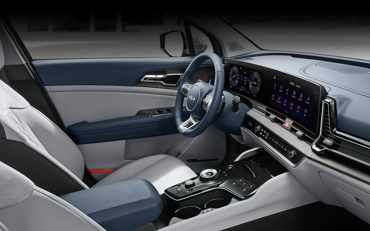 기아 스포티지 실내보지마. 12.3인치 디지털 계기판과 내비게이션 모니터를 연결하여 파노라마 디스플레이내부 공간감을 훌륭하게 만들어주는 요소입니다.