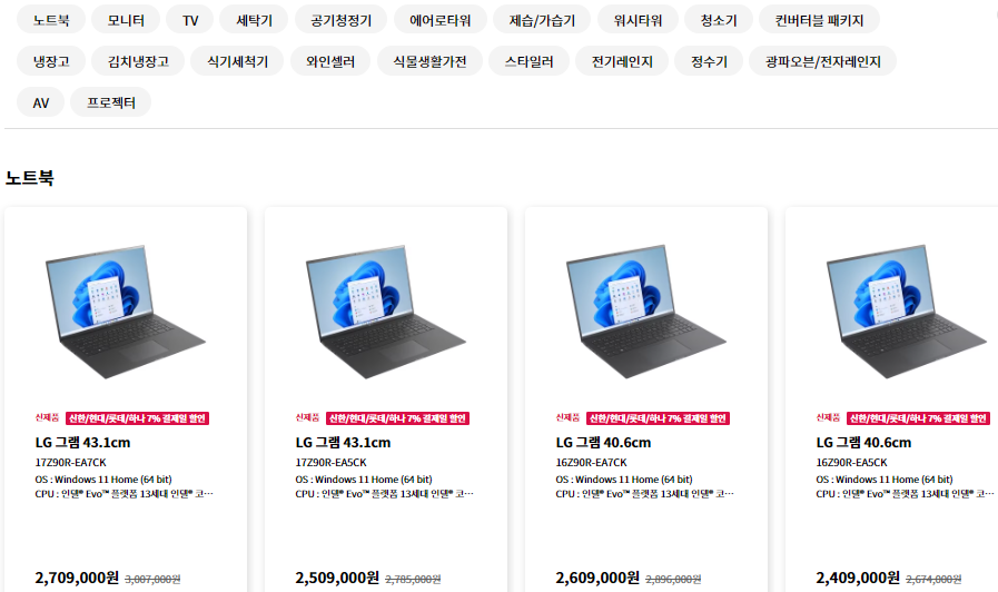 *사진설명: 전 판매상품 예시(LG전자)